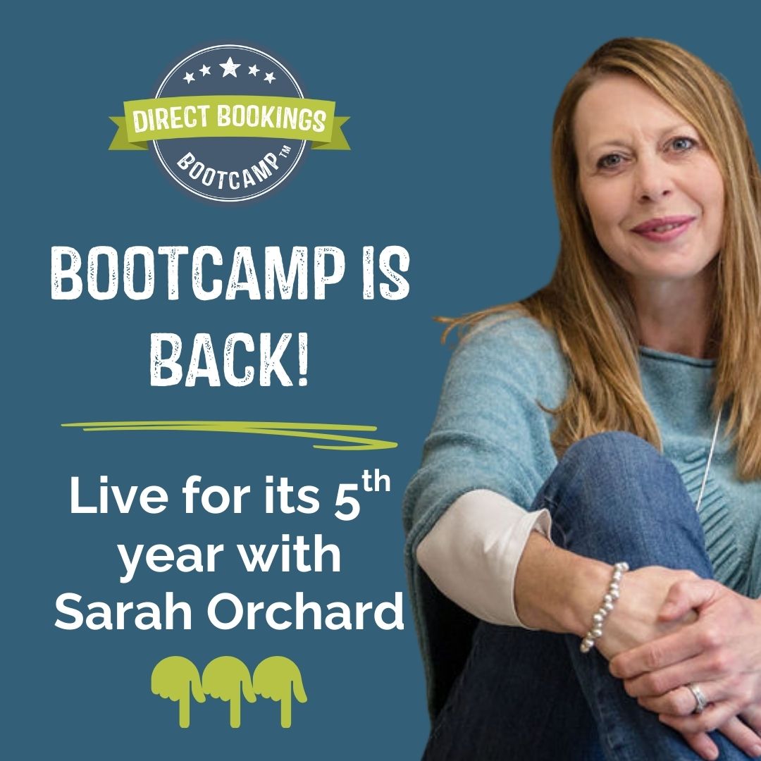 THE DIRECT BOOKINGS BOOTCAMP™, is now LIVE for the only time this year. This ground-breaking programme gives you a clear marketing strategy and actioned-focused roadmap for your business – in 7 simple to follow steps.