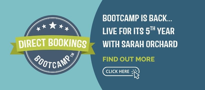 THE DIRECT BOOKINGS BOOTCAMP™, is now LIVE for the only time this year. This ground-breaking programme gives you a clear marketing strategy and actioned-focused roadmap for your business – in 7 simple to follow steps.